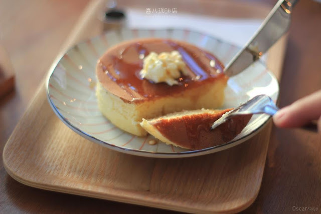 圓圓的奶油原味厚鬆餅 以可愛的型態端上桌